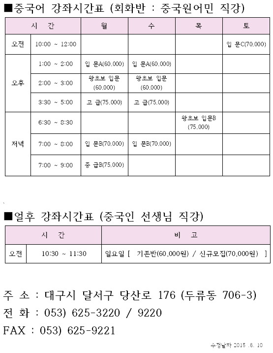 2015년 6월 중국어 강좌 & 얼후 안내